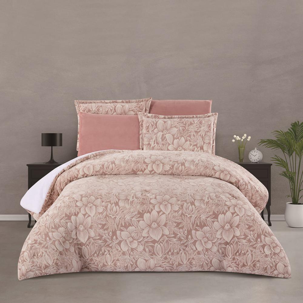 مفرش شتوي مخمل فرو مقاس كوين 6 قطع - فيرون - لحمي غامق