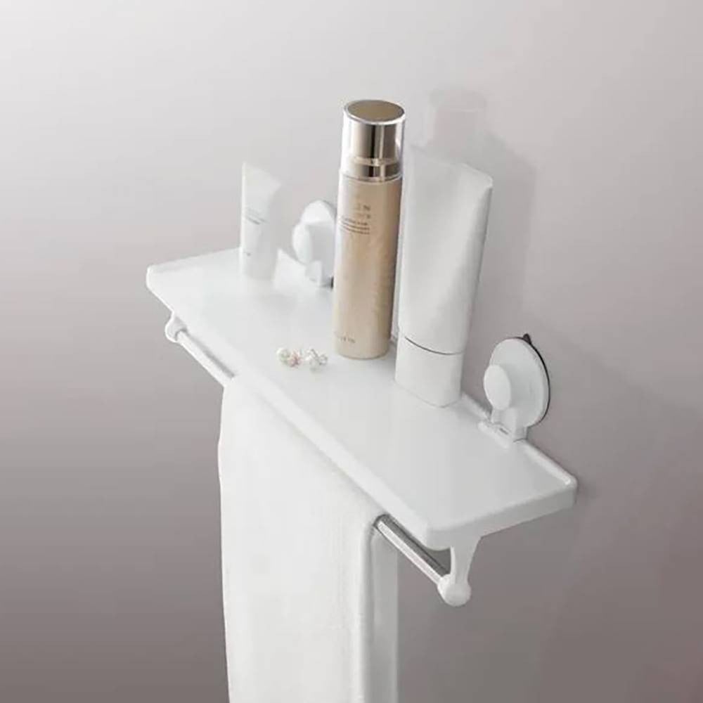 رف شامبو متصل بحامل منشفة حل مثالي للحمامات الصغيرة. يوفر مساحة تخزين إضافية لمنتجات الحمام الخاصة بك.