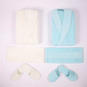 يتضمن الطقم 2 من روب الاستحمام ، 2 منشفة بمقاس48*90 سم، و4 قطع سليبر. اختيار مثالي للعرائس.