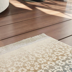 سجادة صلاة صفاء - بزخرف - صممت بشكل جميل بزخرف هندسي لتعطي طابع جمالي صنعت بحب داخل الوطن بلمسة من الحرير الناعم .خامة الخيوط : معالجة بطريقة هيتست مع لمسة حريرية.ارتفاع الوبر : 8 ملم.اللون : كريمي / بيج /...