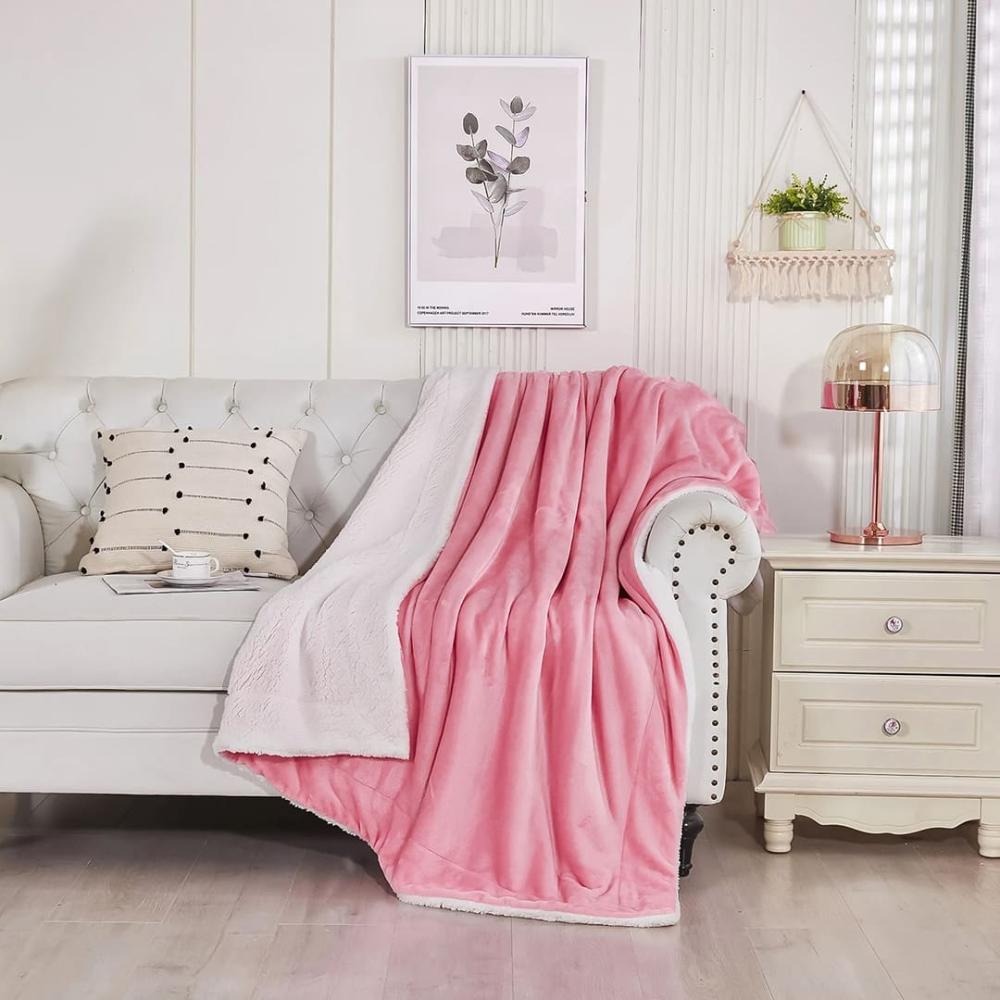 بطانية أنيقة تجمع بين المخمل والفرو لدفء وراحة مثالية في الشتاء.