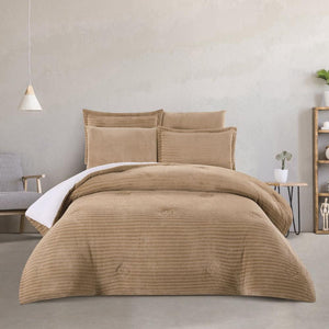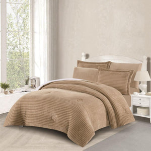 مفرش شتوي مزدوج مخمل فرو محفور 6 قطع - لينارا - بني