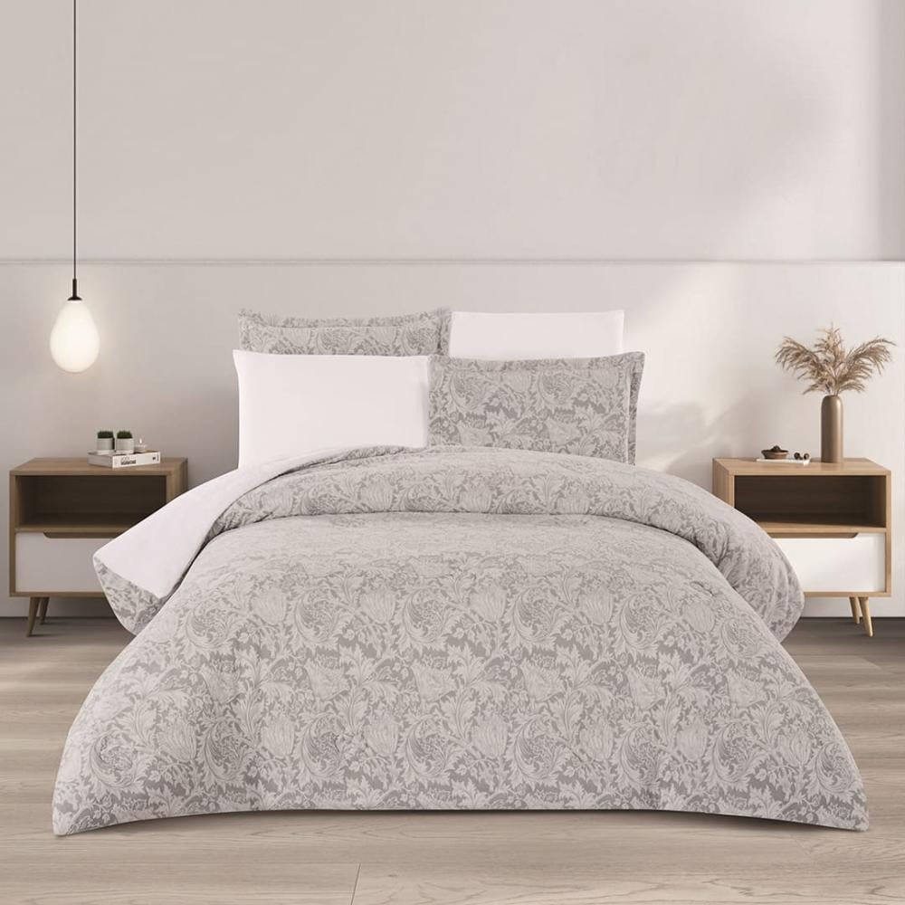 مفرش شتوي مزدوج مخمل فرو 6 قطع - اورنيلا - رمادي