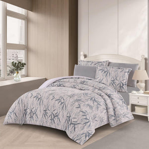 مفرش شتوي مزدوج مخمل فرو 6 قطع - فلوريت - أبيض - رمادي