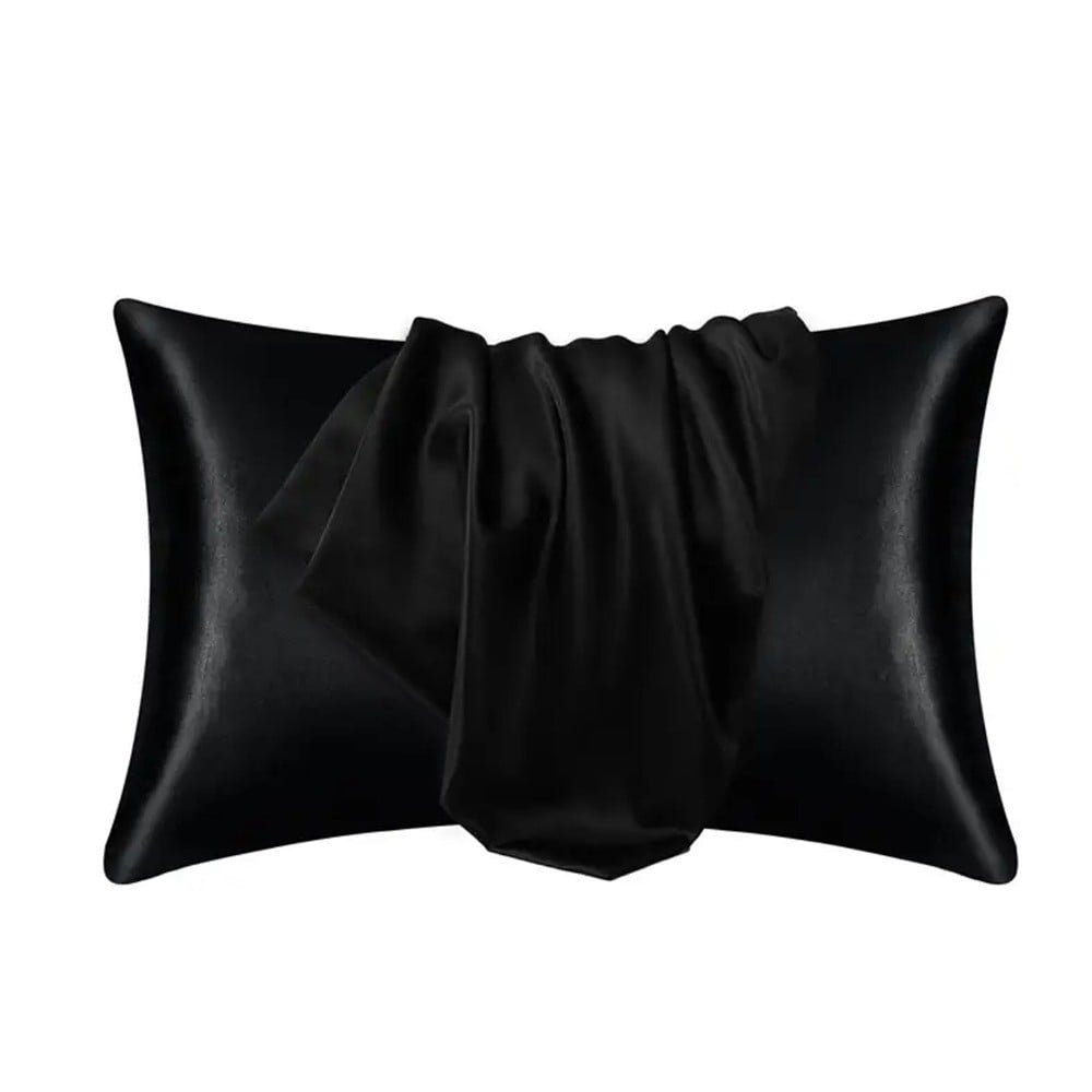 غطاء وسادة حرير طبيعي - مارلين - أسود
