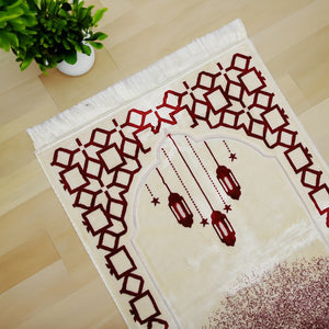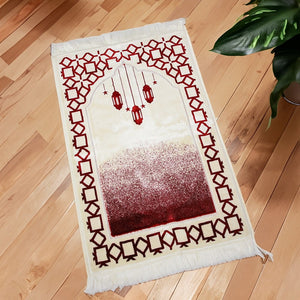 سجادة صلاة حرير اكريلك تركي - اخلاص - كريمي - احمر