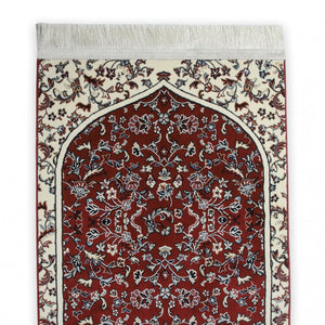 سجادة صلاة صفاء - صممت بشكل جميل لتعطي طابع جمالي وتربطنا بهويتنا العربية الاصيلة صنعت بحب داخل الوطن بلمسة من الحرير الناعم .خامة الخيوط : معالجة بطريقة هيتست مع لمسة حريرية.ارتفاع الوبر : 8 ملم.اللون : احمر - بيج .المقاسات...