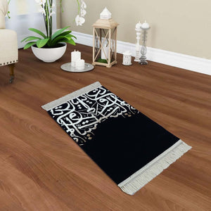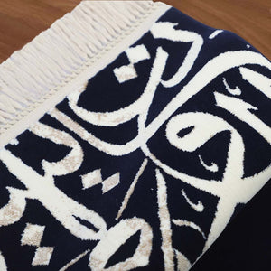 سجادة صلاه صفاء - ازرق - بخط عربي - صممت بشكل جميل بالخط العربي لتعطي طابع جمالي وتربطنا بهويتنا العربية الاصيلة , بلمسة من الحرير الناعم .