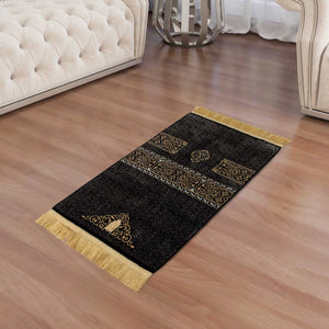 سجادة صلاة قرطبة ستار الكعبة .خامة الخيوط : اكليرك معالج.ارتفاع الوبر : 4 ملم.المقاسات :الطول 110 سم العرض 70 سم .اللون : اسود / ذهبي.بلد الصنع : السعودية.تصفح المزيد من سجادات وشراشف الصلاة