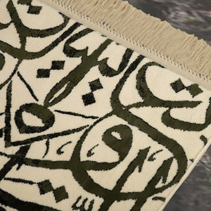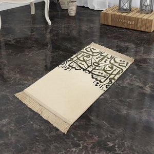 سجادة صلاه صفاء - كريمي - بخط عربي - صممت بشكل جميل بالخط العربي لتعطي طابع جمالي وتربطنا بهويتنا العربية الاصيلة , بلمسة من الحرير الناعم .