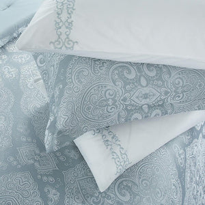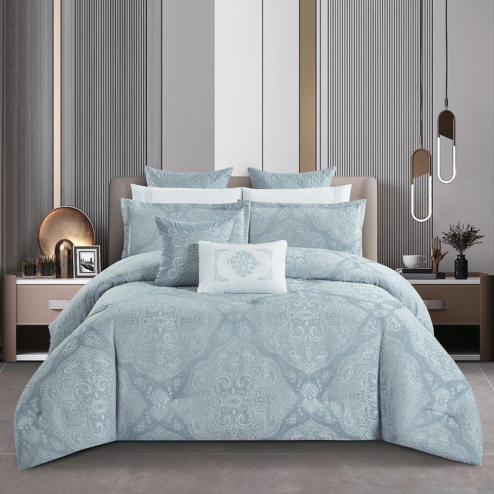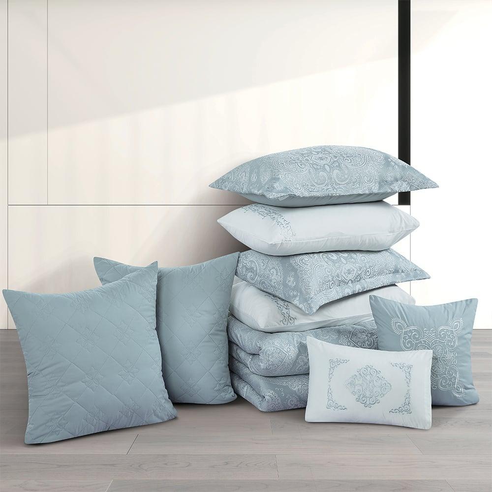 مفرش صيفي فاخر كوين جاكار مطرز 8 قطع – أورليا Aurelia – ازرق ضبابي