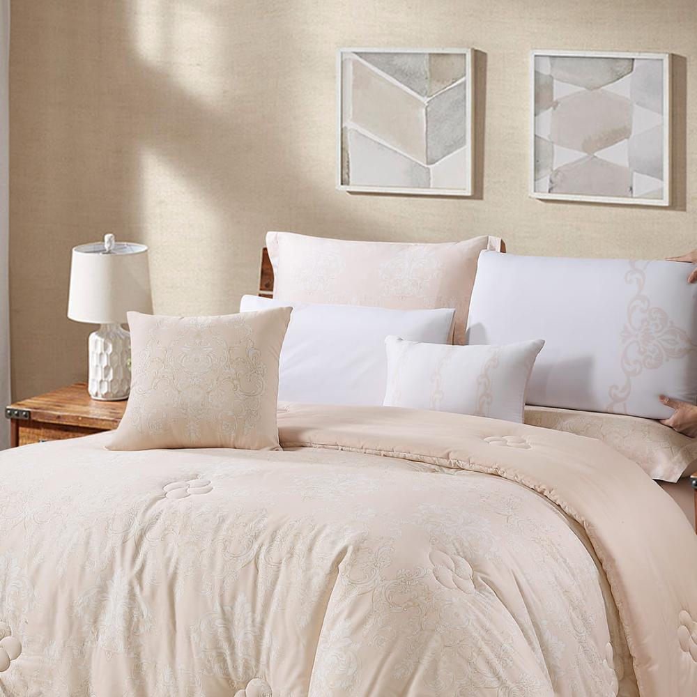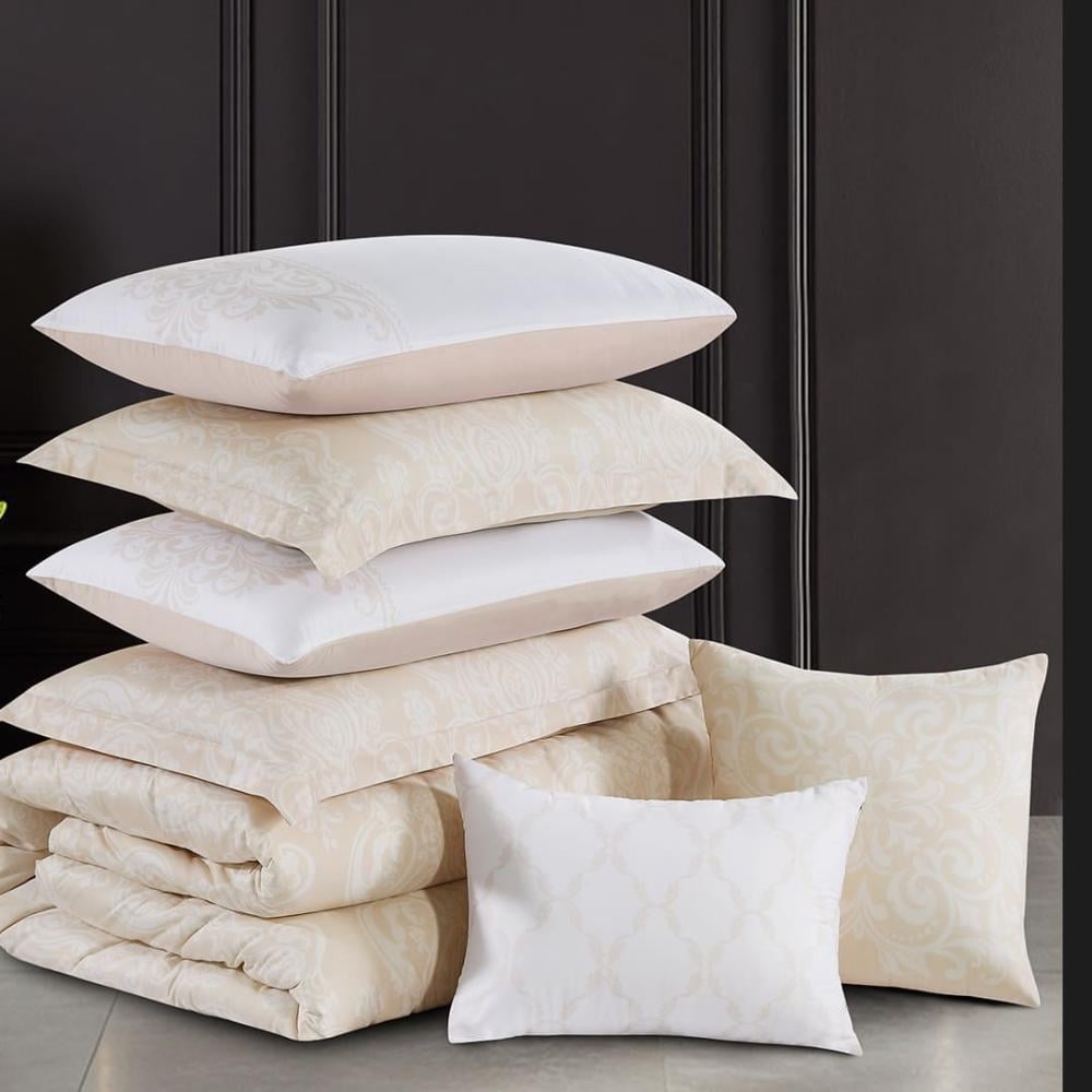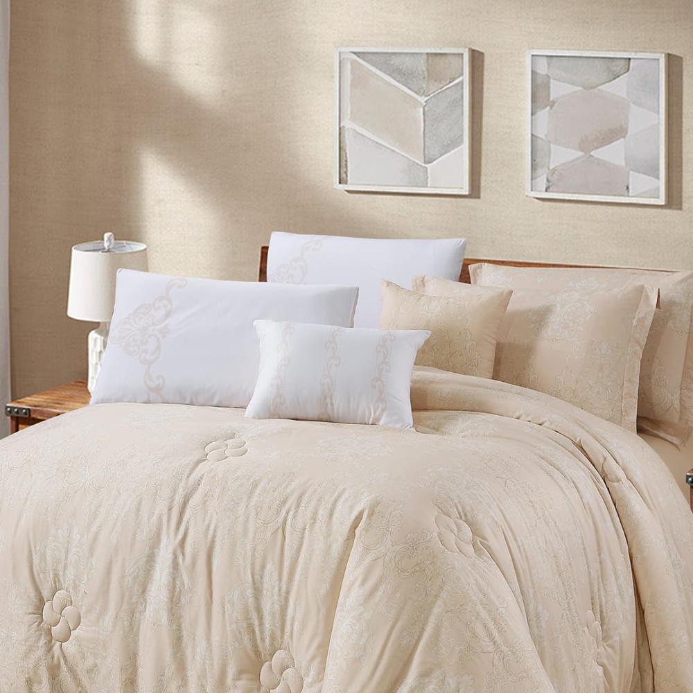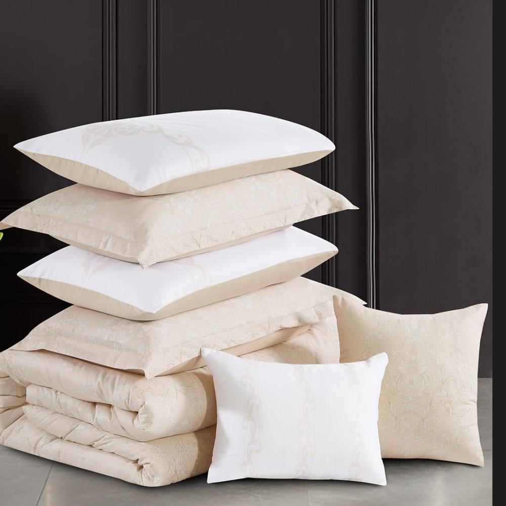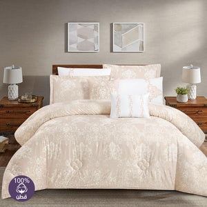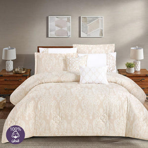 مفرش قطن عالي النعومة مزدوج 300 غرزه 8 قطع - ايليورا -كريمي