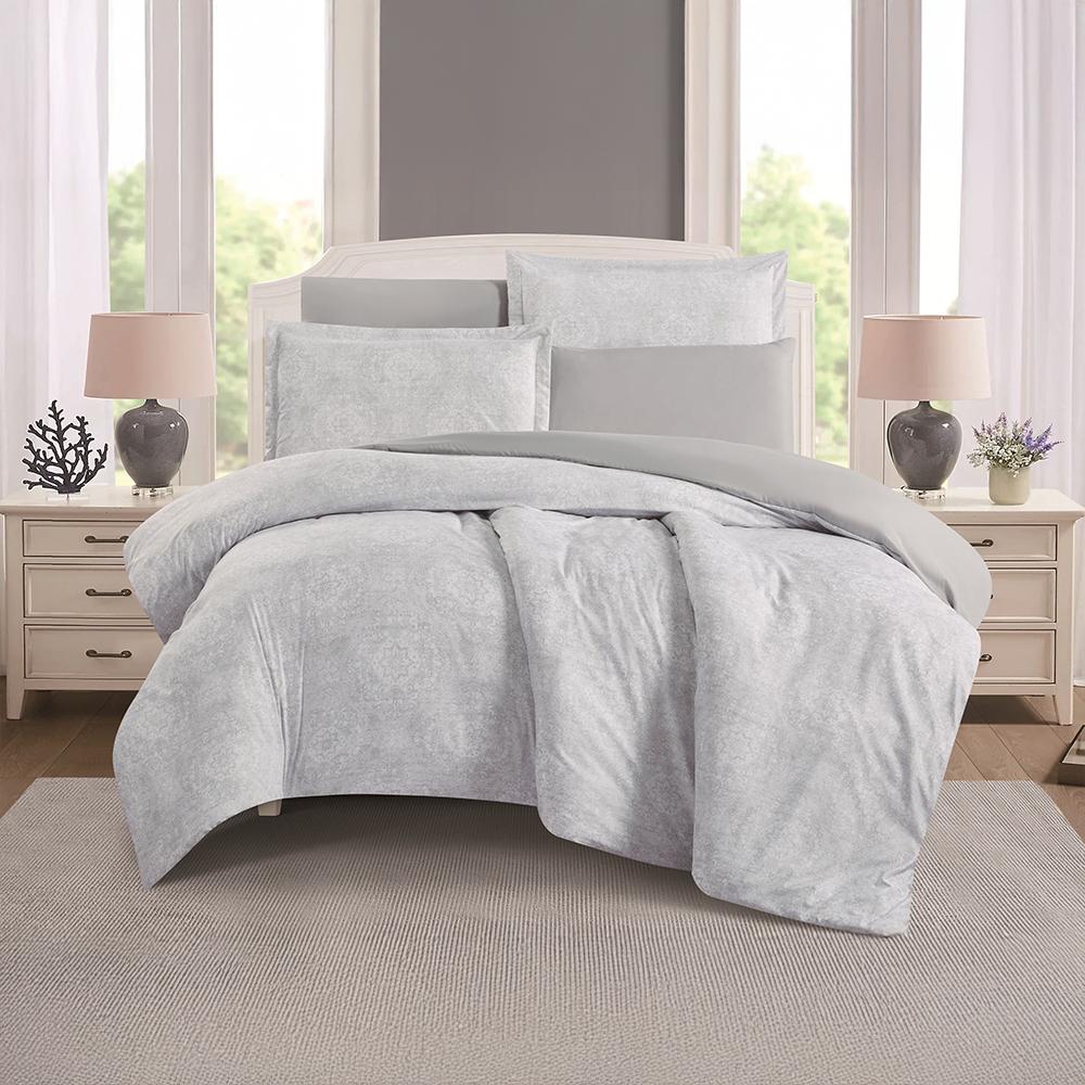 طقم بيت لحاف بدون حشوة مزدوج 6 قطع - امالينا - رصاصي - رمادي