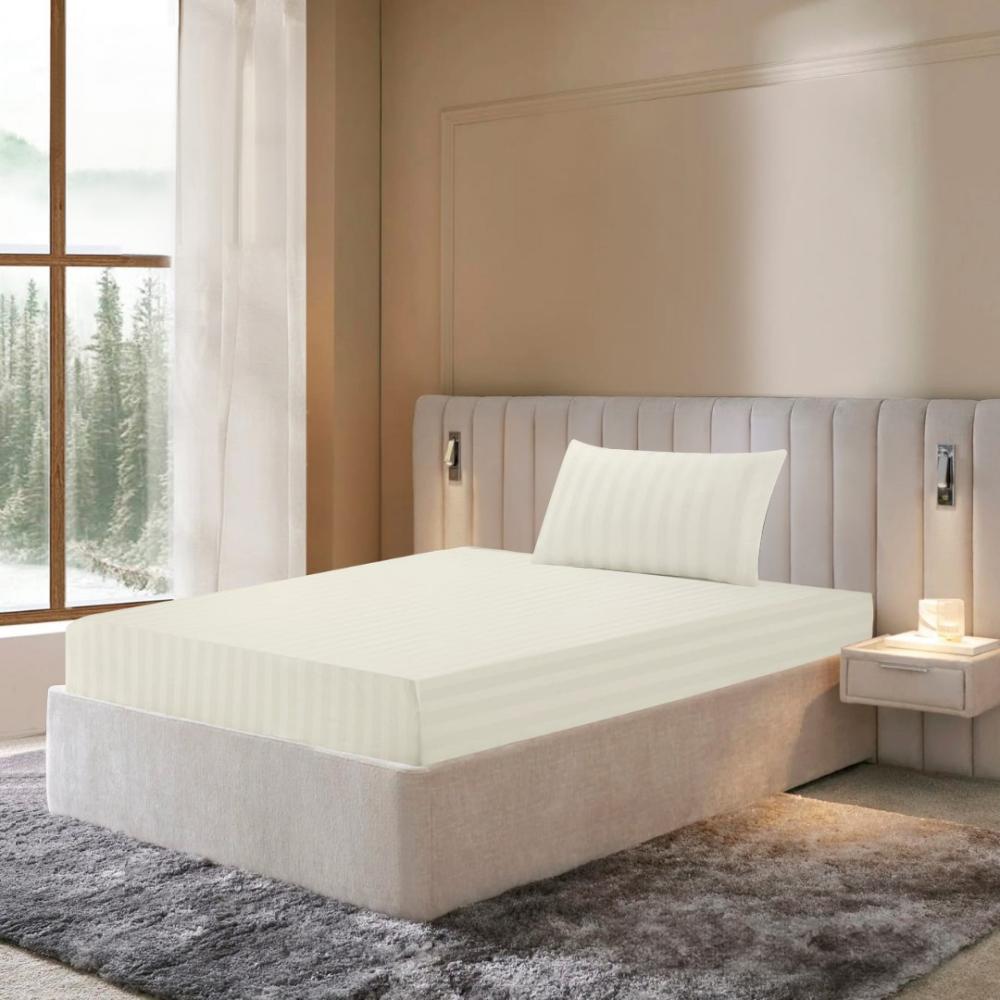 شرشف قطن كوين بمطاط على جوانبه الأربعة، لثبيته على المرتبة، طقم يأتي ب 2 قطع بقماش قطن 100%.