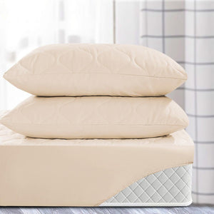 طقم شرشف قطن 300غرزة صيفي مزدوج مبطن بحشوة خفيفة٣ قطع - ليتيسيا - بيج