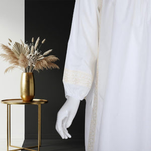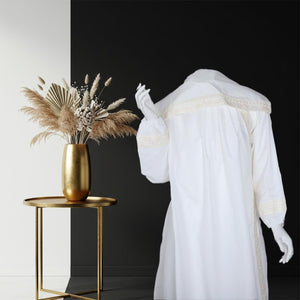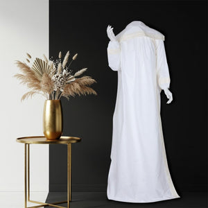 مصنوع من مايكروفايبر ناعم بلون بيج فاتح، بتصميم مريح وطرحة واسعة. تفاصيل المنتج :الخامة : مايكروفايبر اللون : اوف وايتالمقاسات :الطول : 160 سم العرض :85 سمطول اليد : 48 سم عرض الطرحة: 198سمطول الطرحة : 55سم بلد الصنع : المملكة العربية السعوديةتصفح المزيد...