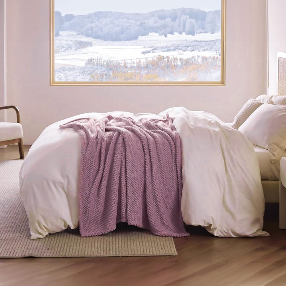 بطانية بتصميم محفور من المخمل بلمسة ناعمه وانيق مناسبة لليالي الشتاء .