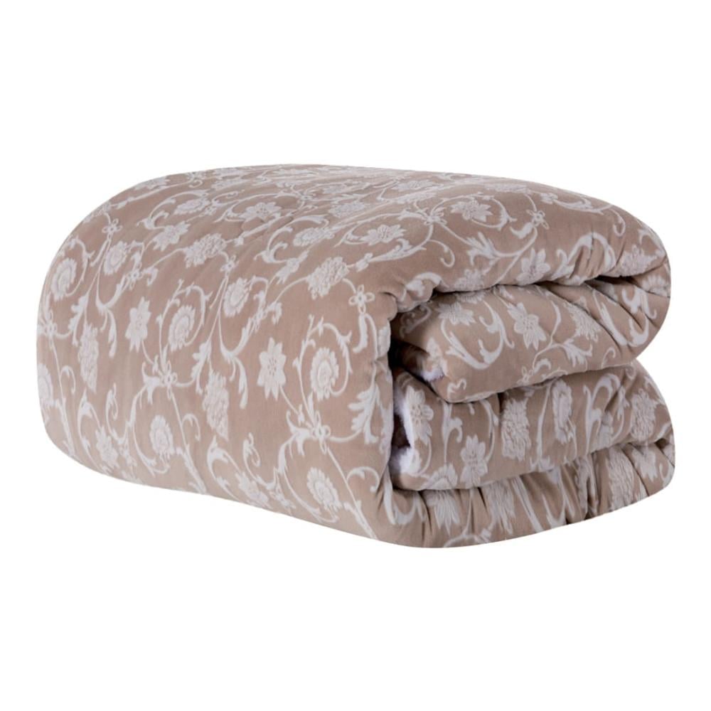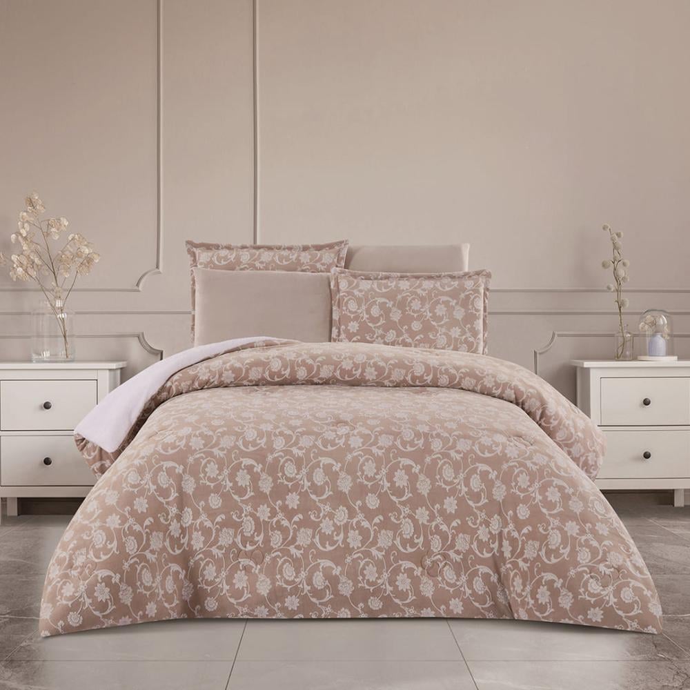 مفرش شتوي مخمل فرو مقاس كوين 6 قطع -ليزايا - بيج غامق - بيج فاتح