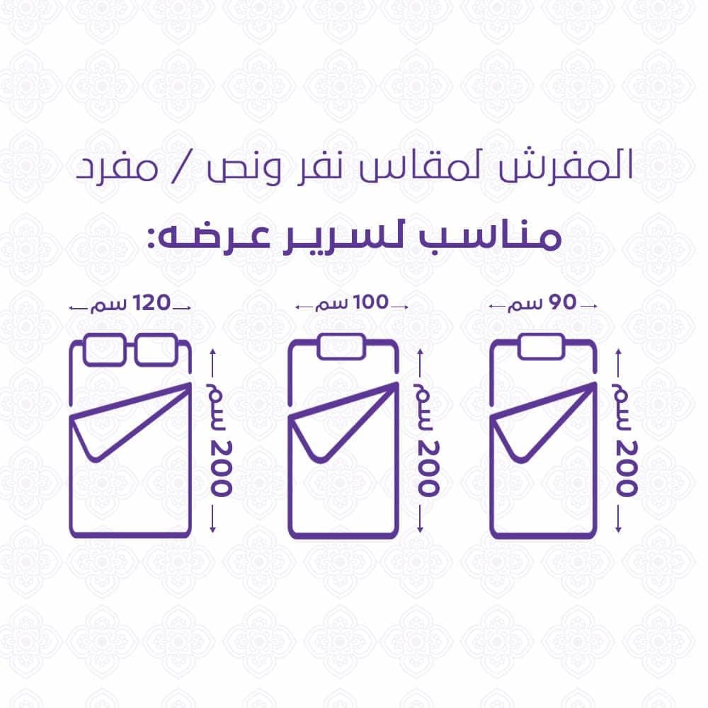 1-شرشف مغاط : الطول200سم العرض 120سم +30سم.
