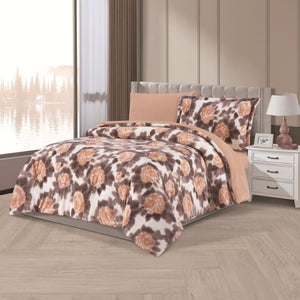 مفرش شتوي مخمل مفرد ونص 4 قطع - تالورا - بني غامق - بيج