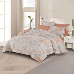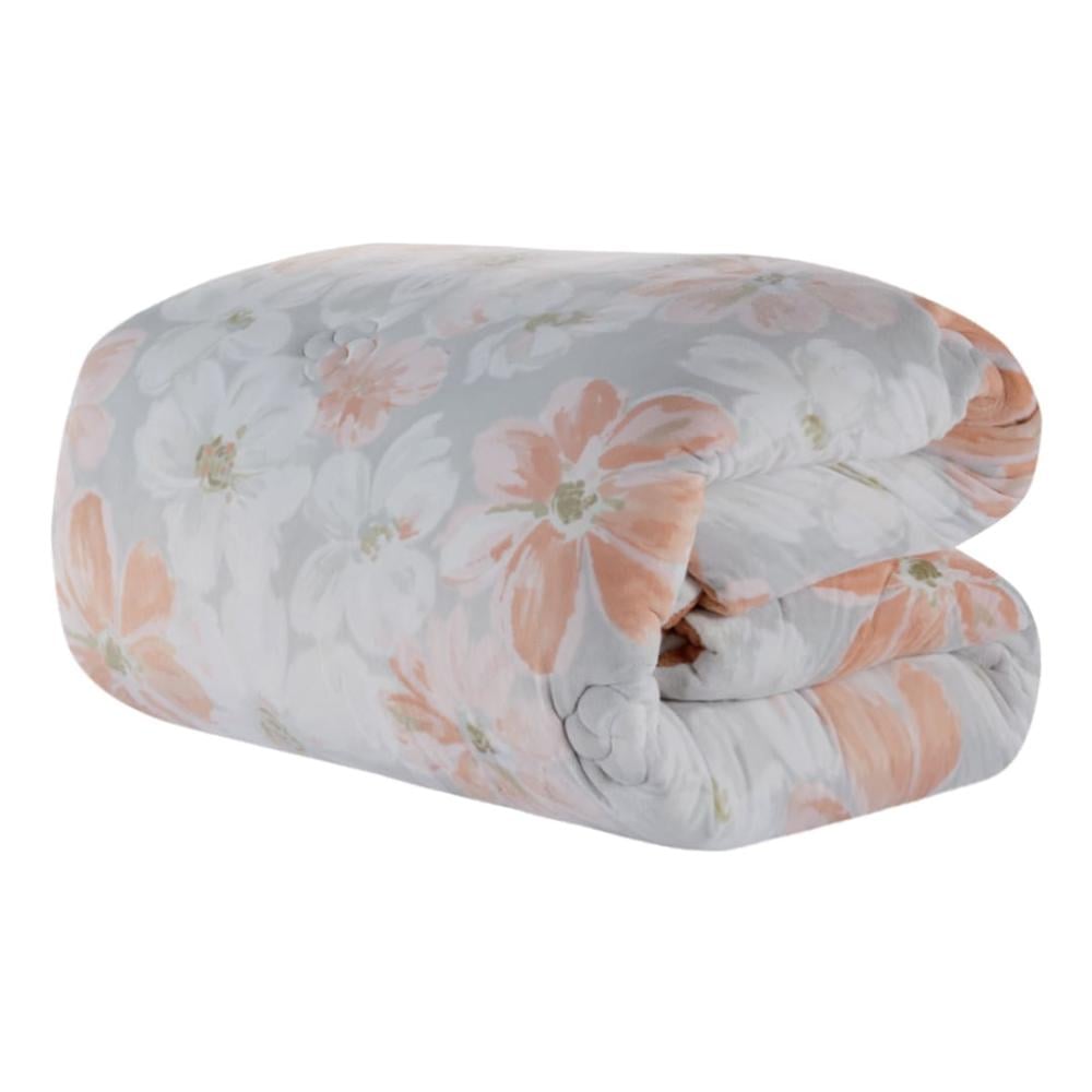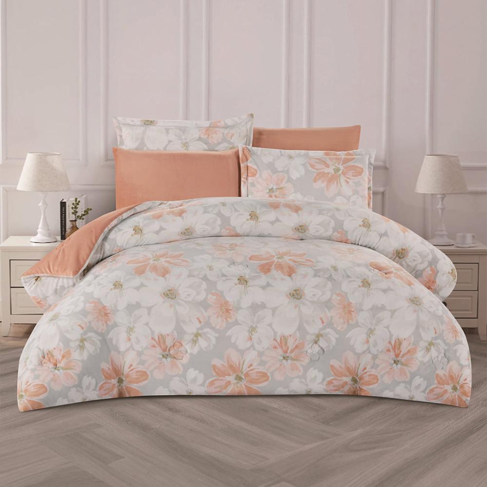مفرش شتوي مخمل مقاس كوين 6 قطع - اودري - رصاصي - خوخي