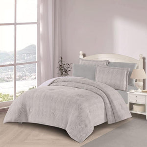 مفرش شتوي مزدوج مخمل فرو 6 قطع - اورنيلا - ابيض عاجي - رمادي