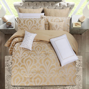 مفرش صيفي فاخر مزدوج جاكار مطرز 12 قطعة – كاسيانا - لون بيج فاتح