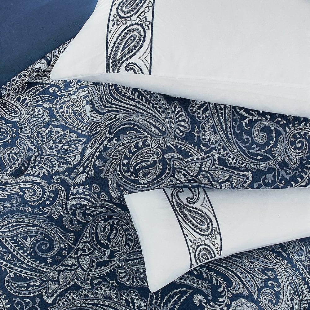 مفرش صيفي فاخر مفرد ونص جاكار مطرز 6 قطع – أمارثا – Amartha – كحلي