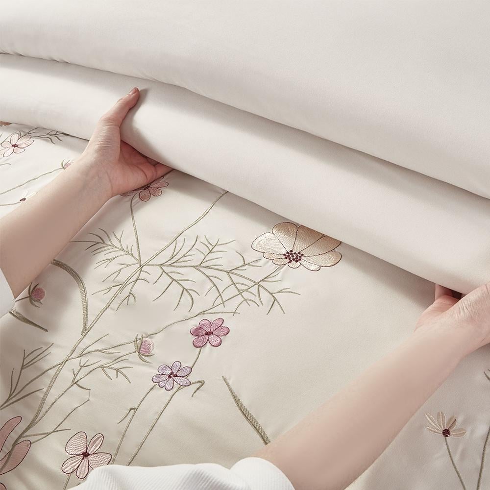 دلّلي غرفتك بتفاصيل فاخرة مع مفرش "ازاليا" الصيفي، بتصميمه المطرز بعناية ولمسته الراقية التي تمنحك أجواءً ملكية دون أن تثقل أجواء الصيف.