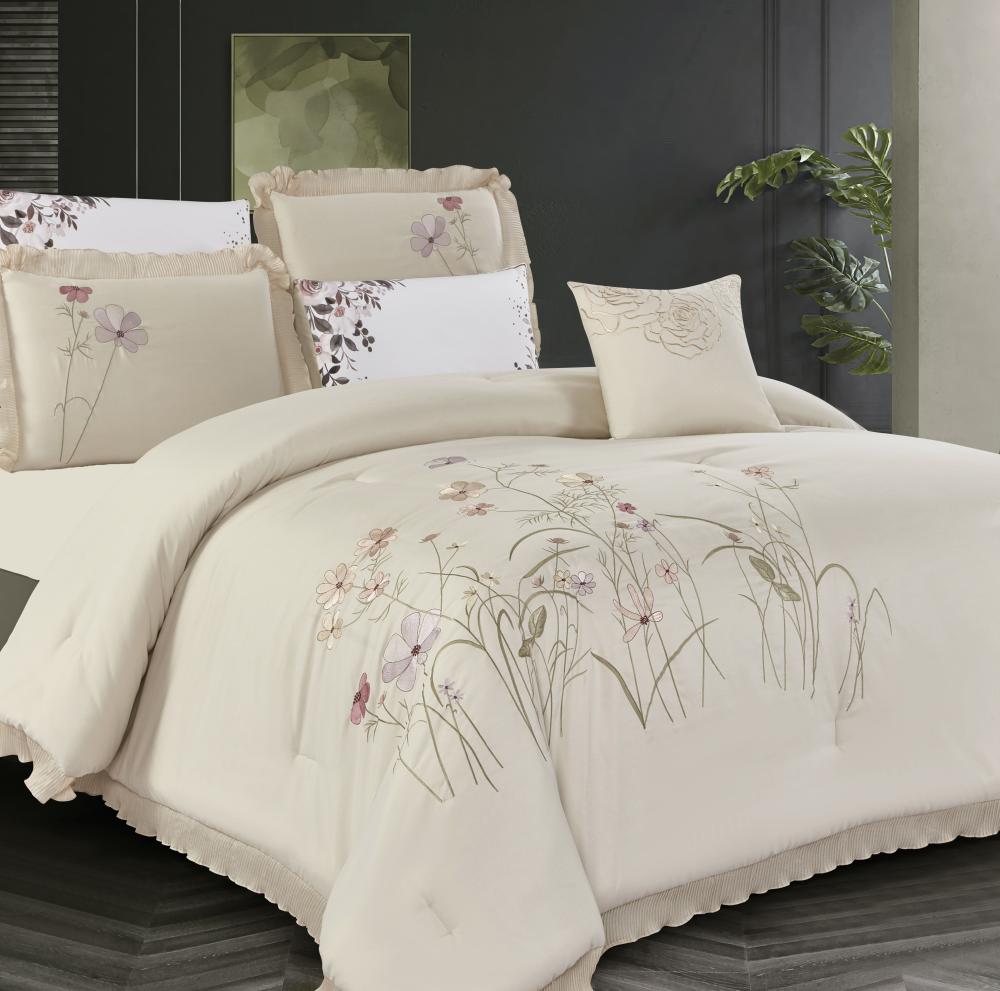 مفرش صيفي مزدوج مطرز فاخر 7 قطع – ازاليا