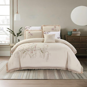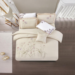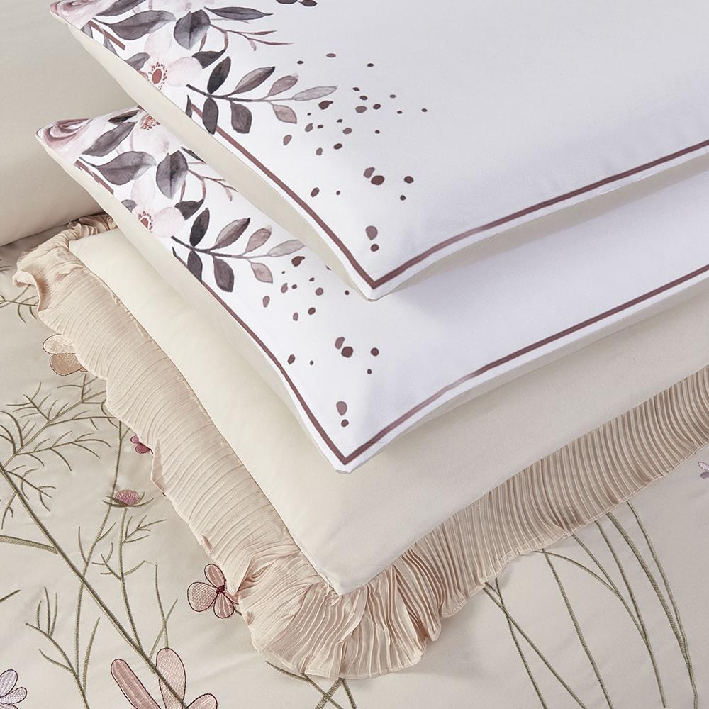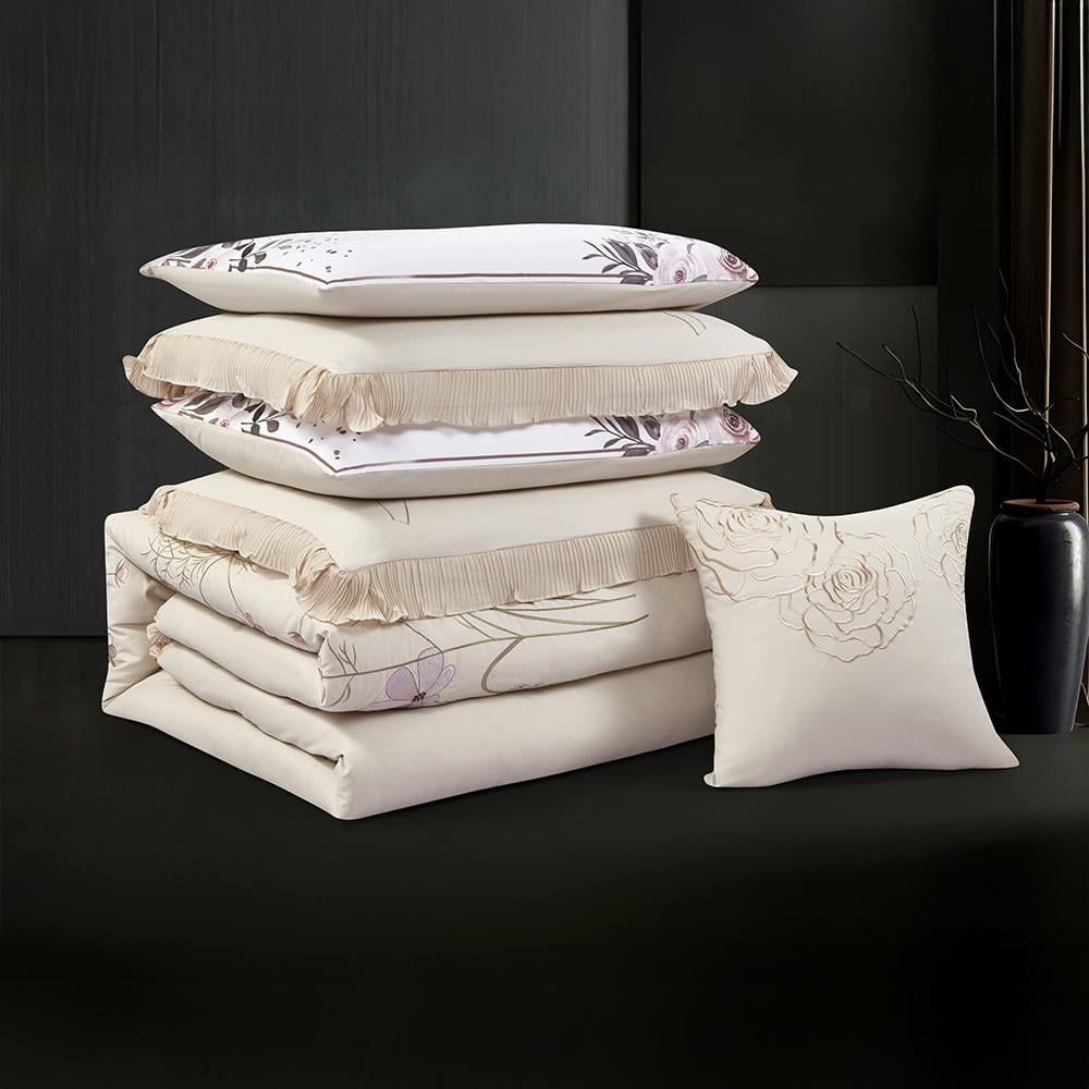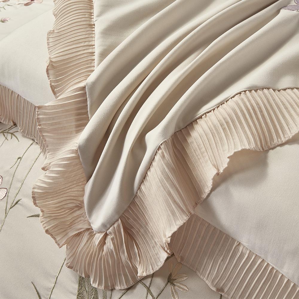 مفرش صيفي مزدوج مطرز فاخر 7 قطع - ازاليا -بيج فاتح