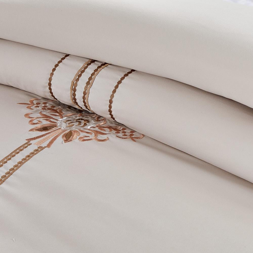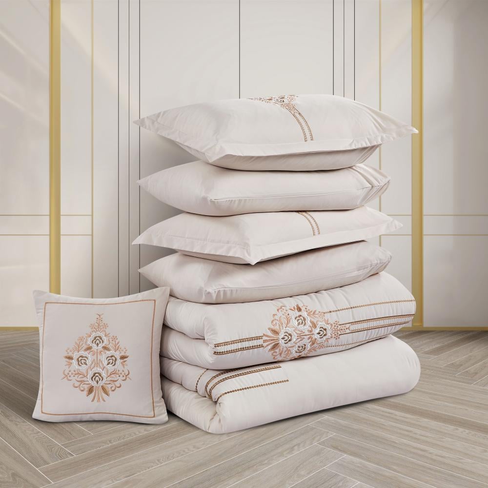 مفرش صيفي مزدوج مطرز فاخر 8 قطع - هيستيا - بيج فاتح