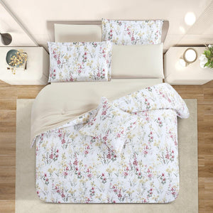 مفرش صيفي مفرد ونص وجهين 4 قطع - سيلون- ابيض - بيج فاتح