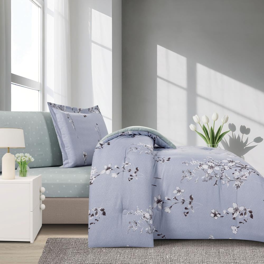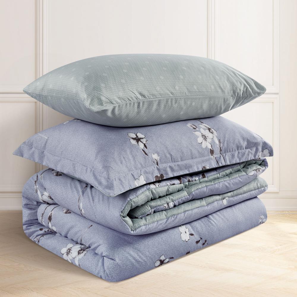 مفرش صيفي مفرد ونص 4 قطع - اديلين - رمادي - اخضر فاتح