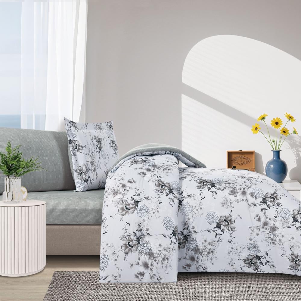 مفرش صيفي مفرد ونص 4 قطع - اديلين - رمادي ثلجي - رصاصي