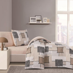 مفرش صيفي مفرد ونص 4 قطع - تيانا - بيج غامق - بيج فاتح