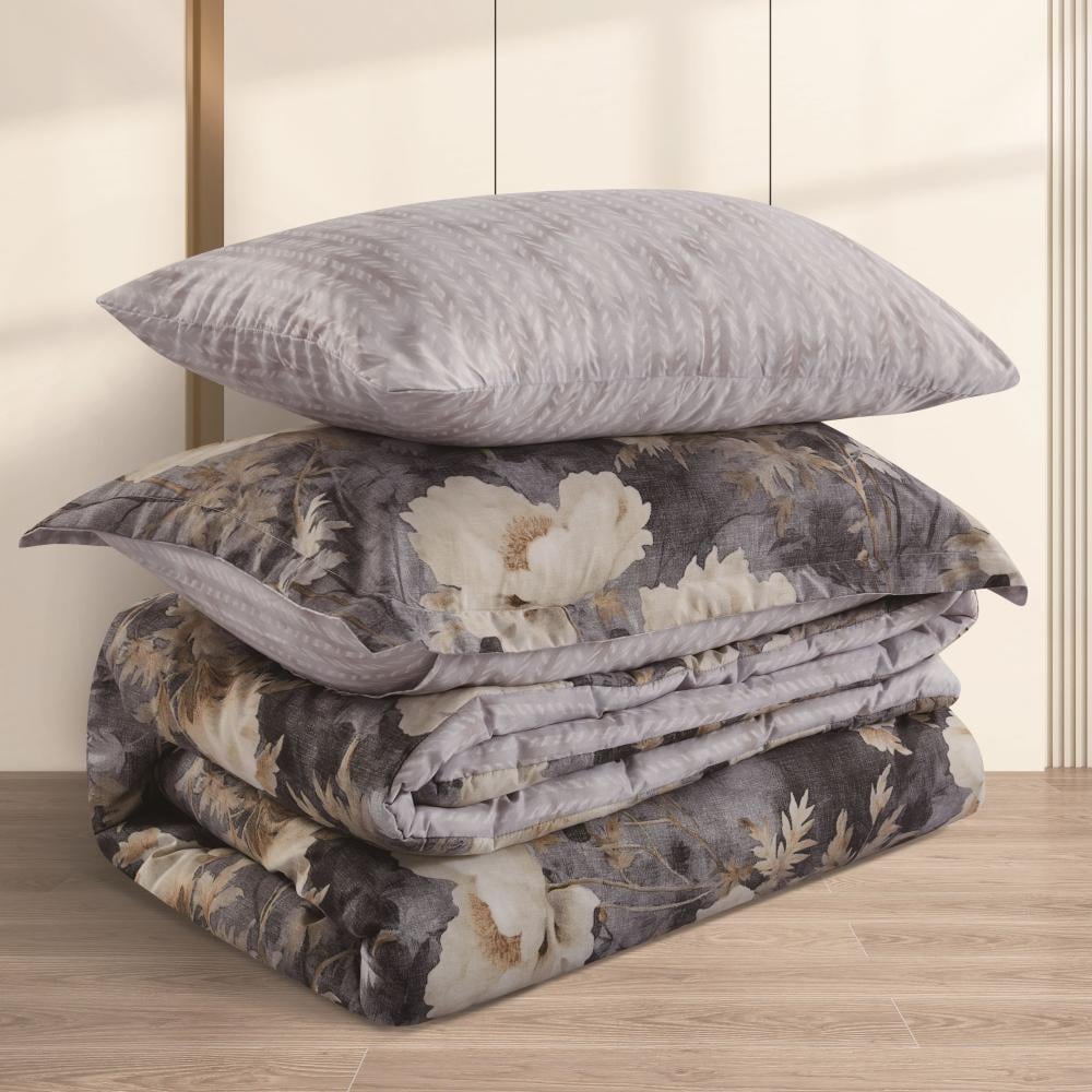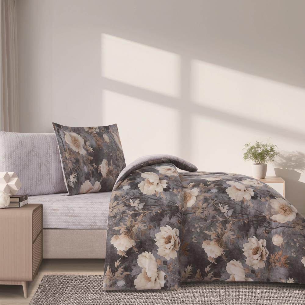 مفرش صيفي مفرد ونص 4 قطع - تيانا - رمادي غامق - رصاصي فاتح