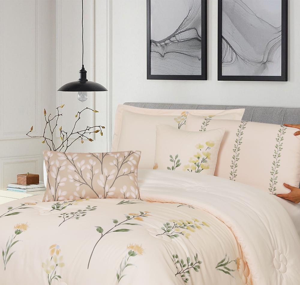 مفرش صيفي مفرد ونص 8 قطع - مارجو -كريمي غامق