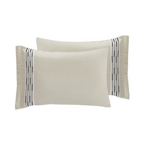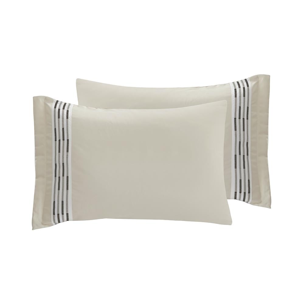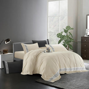 مفرش صيفي مناسب لمقاس كوين ومفرد ونص مطرز بنظام فندقي 5 قطع - فالين - بيج فاتح