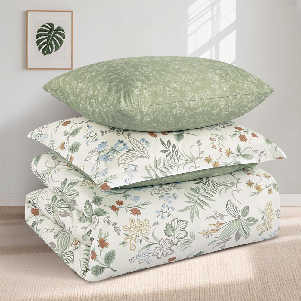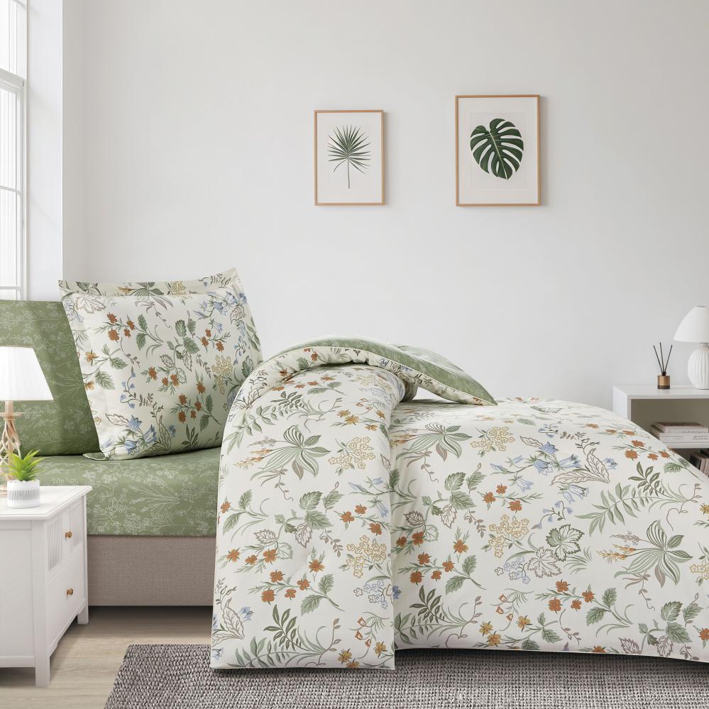 مفرش قطن صيفي مفرد ونص ٤ قطع - نولين - سكري - اخضر