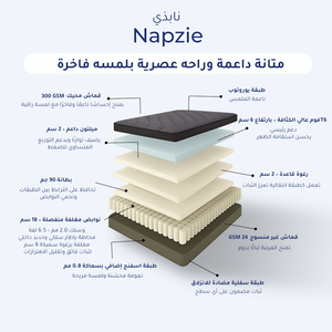 اكتشف مستوى جديد من التوازن بين الصلابة والنعومة مع مرتبة نابزي Napzie، المصممة بعناية لتقدم لك تجربة نوم هادئة، وراحة صلبة دون التضحية بالإحساس الفاخر.