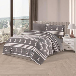 مفرش شتوي مخمل مفرد ونص 4 قطع - تالورا - رمادي