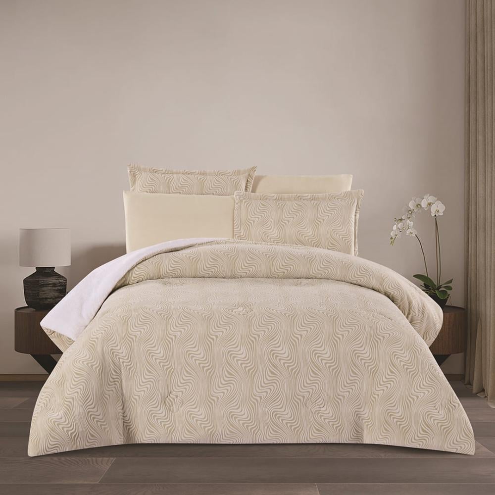 مفرش شتوي مزدوج مخمل فرو 6 قطع - اورنيلا - كريمي - بيج فاتح
