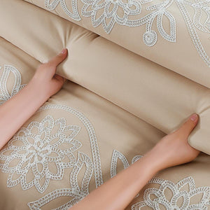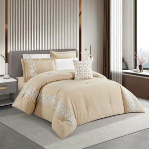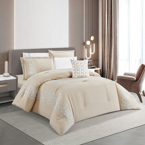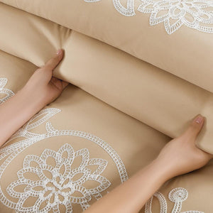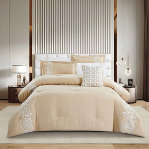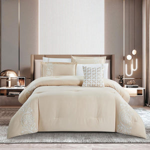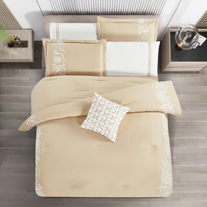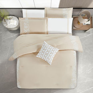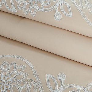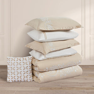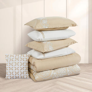 مفرش صيفي مفرد ونص مطرز فاخر 6 قطع - رينا - بيج