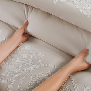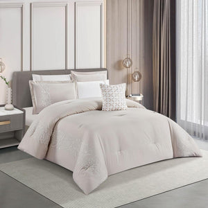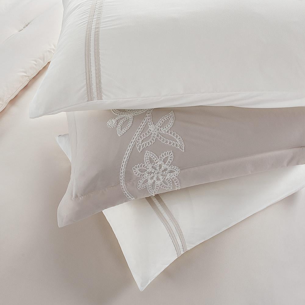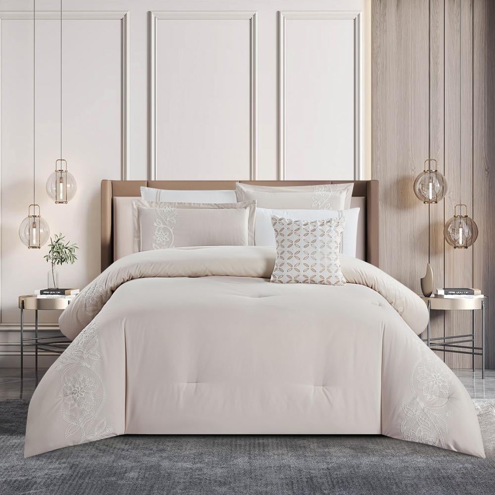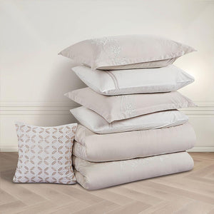 مفرش صيفي مفرد ونص مطرز فاخر 6 قطع - رينا - بيج فاتح