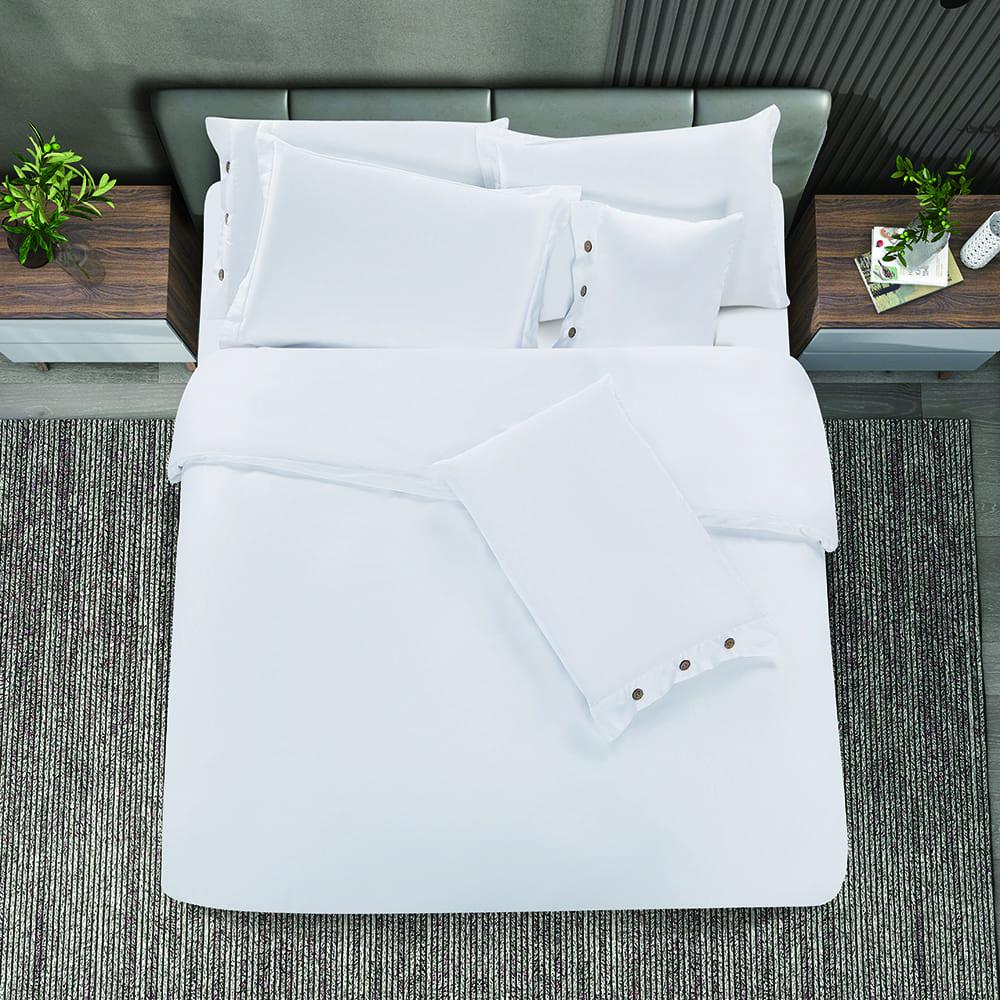 مفرش فندقي قطن عالي النعومة مزدوج 300 غرزه - 8 قطع - نوفا - أبيض