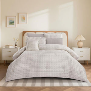 مفرش قطن صيفي مزدوج 8 قطع - زافيرا - بيج - رمادي
