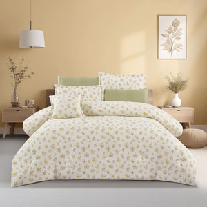 مفرش قطن صيفي مقاس كوين 8 قطع - نوفارين - بيج - اخضر فاتح