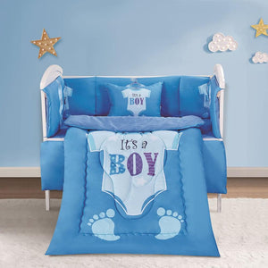 مفرش مواليد مكوّن من 5 قطع بحواجز جانبية لحماية طفلكِ، مصنوع من خامة مايكرو فايبر ناعمة ولطيفة على البشرة ، راحة مثالية وأمان طوال الليل.عدد القطع : 5القماش : مايكروفايبر بديل القطنالحشوة : ثابتةالحشوة الداخلية : مايكروفايبراللون : أزرقالمقاسات : 1-شرشف بمغاط...