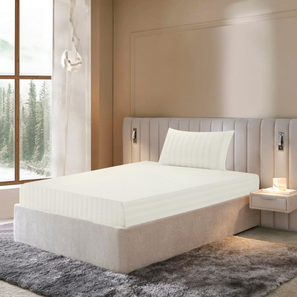 شرشف قطن كوين بمطاط على جوانبه الأربعة، لثبيته على المرتبة، طقم يأتي ب 2 قطع بقماش قطن 100%.